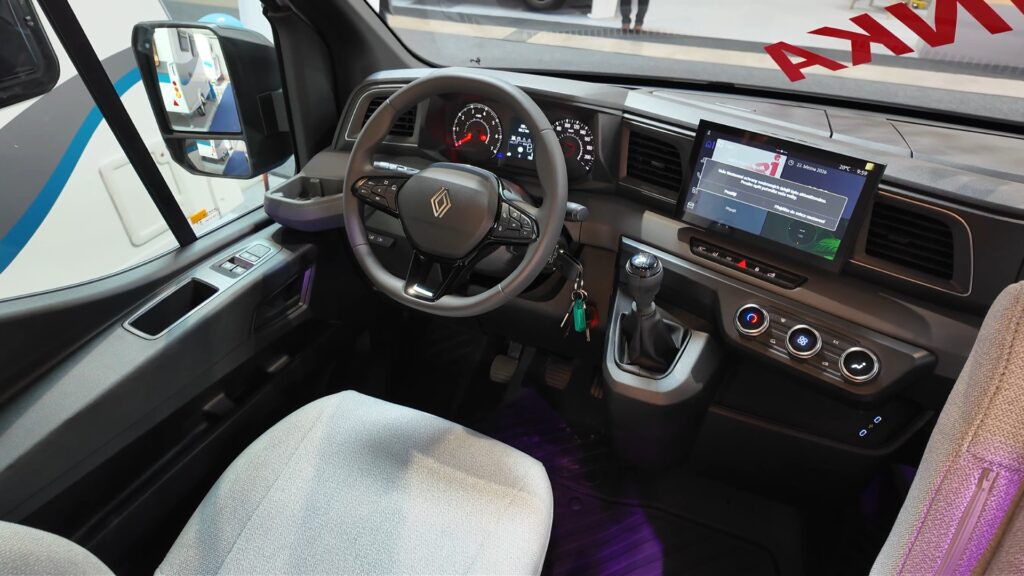 Zatímco u mnoha jiných obytných vozů postavených na podvozcích Stellantis je uspořádání kabiny řidiče notoricky známé a dlouhodobě beze změn, Renault Master přináší do tohoto segmentu příjemné oživení. Místo pro řidiče je po designové stránce řešeno velmi elegantně. Palubní desce dominují přehledné ovládací prvky klimatizace a ventilátoru ve formě fyzických tlačítek, což řidiči za jízdy výrazně usnadňuje manipulaci.